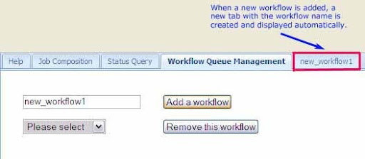 When a user creates and adds a new job, it can add this job to any existing workflow. Because we have created a workflow called "new_workflow1", this workflow appears in the drop box.